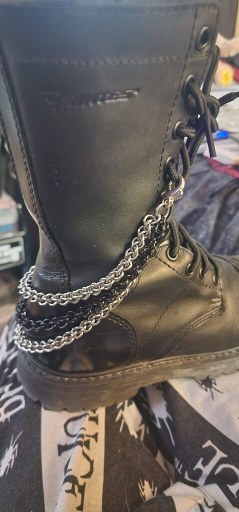 Custom boot chains in stainless steel and black anodized aluminum in 16g JPL3 weave
