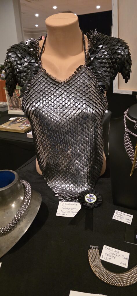 This scalemaille top won Best In Show at the Monstah Mag Makers Market in December 2025