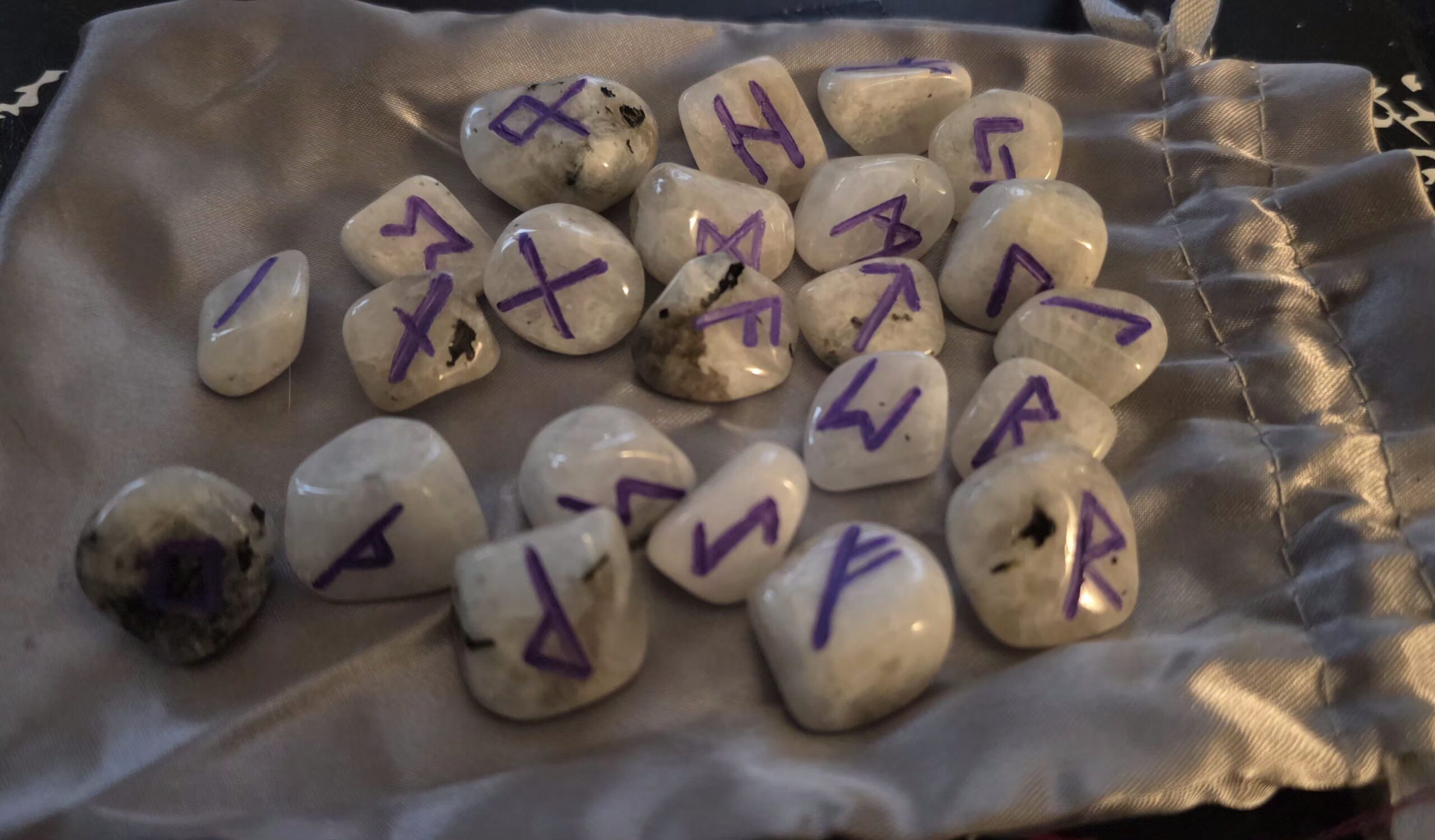 The runes can be used to help guide you through problems or issues and help show you what is likely to happen, and you can also use them while you are in meditation, and for crystal healing.